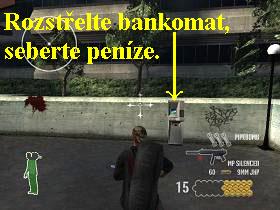 zdálky rozstřelte pátý, tedy poslední bankomat a seberte bankovky. Jakmile