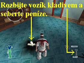 a seberte peníze, poté pokračujte na konci doprava a uličkou mezi živými