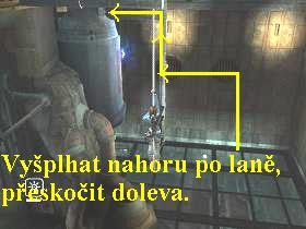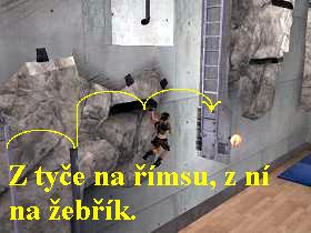 ní doprava. Poté přeskočte na ebřík, vylezte po něm a nahoru, přeskočte