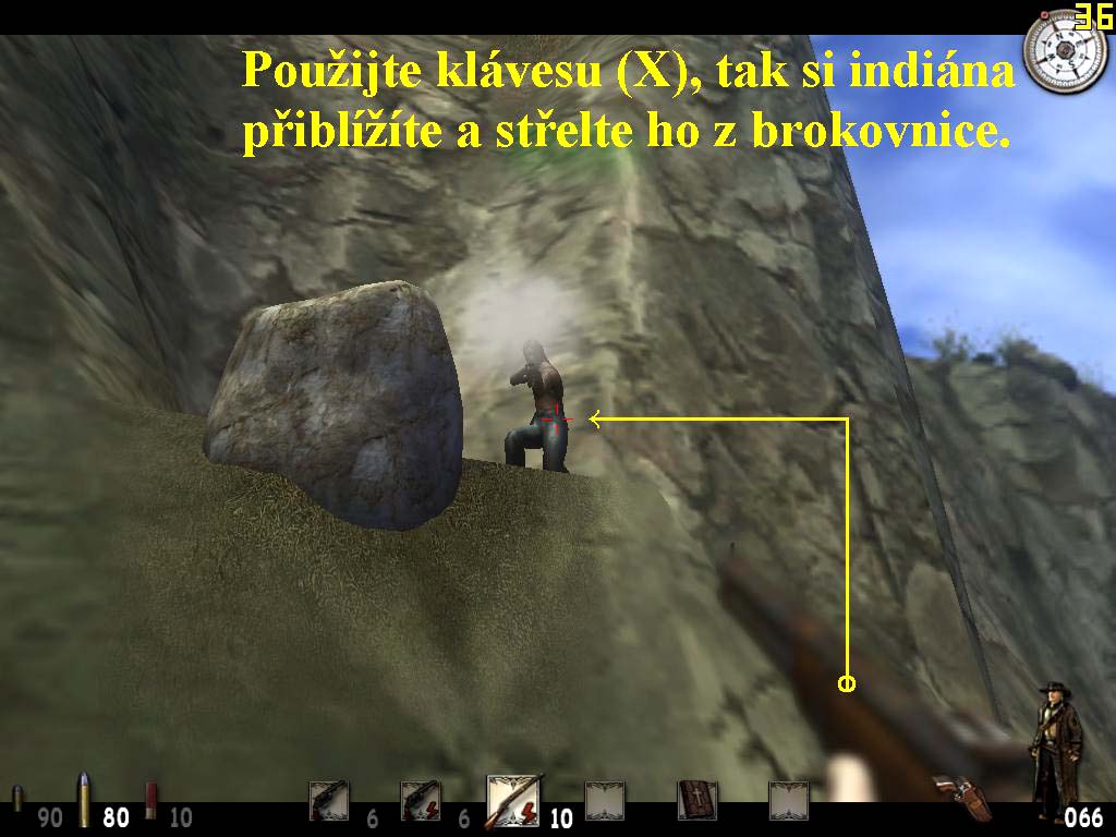 projděte, postřílejte bandity na ochoze a po bednách seskákejte dolů na