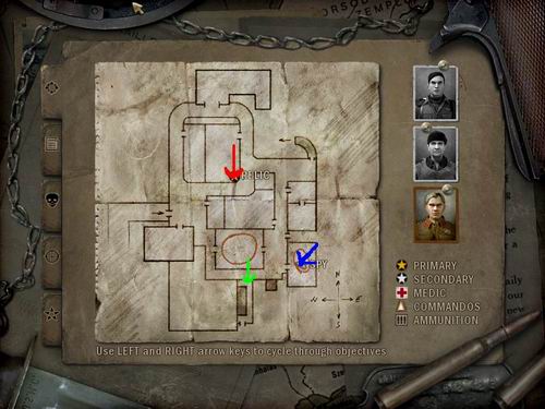 pozná, v klidu projdete mezi německými vojáky). Odstraňte OFFICERA tak