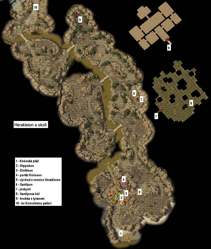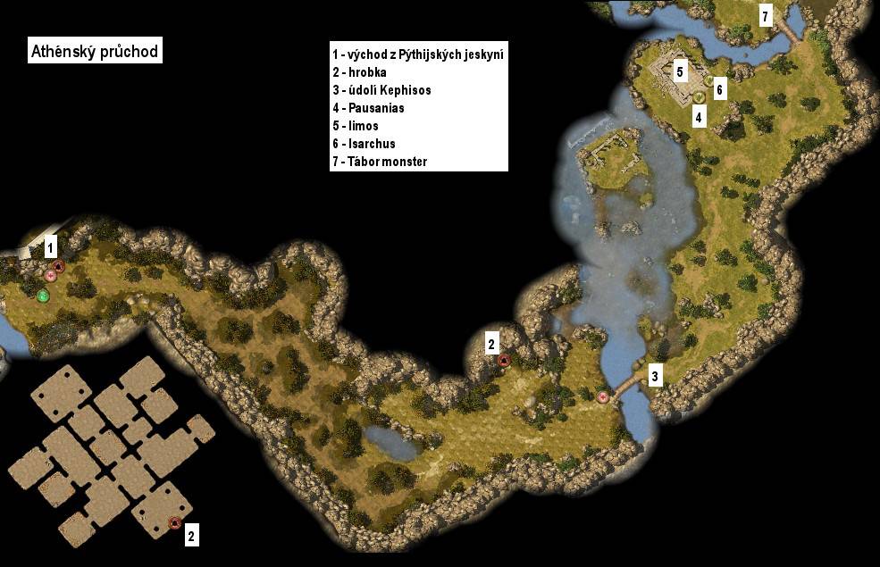 Tellise a vězní ho v nedaleké jeskyni. Vstupte tedy do Lakónie, procházejte