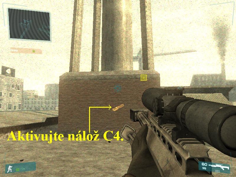 sniperovi, odbočte doprava a hned poté doleva. Vpravo postřílejte pěšáky,
