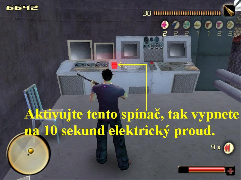 animace. V místnosti postřílejte několik nepřátel, po mrtvolách posbírejte