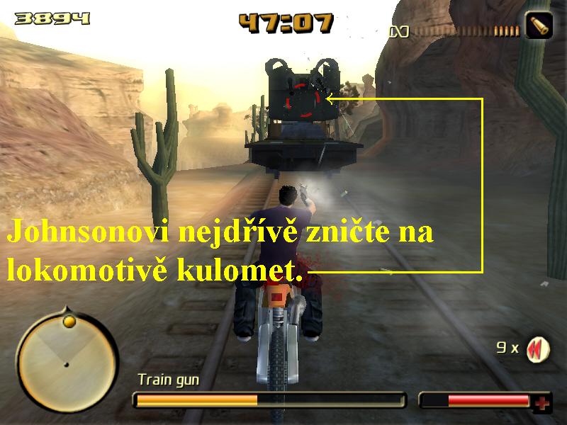 likvidovat bandity. Projděte do vagónu dveřmi vpravo, zastřelte darebáka a