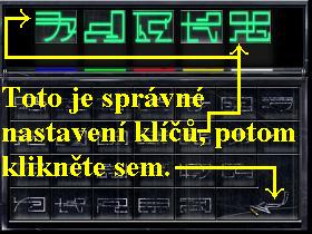 Předem vás upozorňuji na fakt, že tato část je velice obtížná a nesnadná, proto velice často používejte rychlé uložení a zpětné nahrávání (F5 a F8), rozhodně se vám to vyplatí. Sejděte z výtahové plošiny, na které jste sem přijeli, odbočte doprava a nastupte si na jinou, kulatou plošinu, vyjedete výš, nahoře vystupte a vejděte do chodby. Postřílejte bastardy, dejte se doprava, nastupte si do prvního výtahu vpravo a sjeďte dolů. Likvidujte bandity po obou stranách ve výklencích, střílejte do bloků před vámi, ze kterých to jiskří, tak se posunete s lávkou dále a přeskočte si na druhou, která se k vám přiblíží. Tímto způsobem, který stále opakujte se dostanete až k přístroji na druhé straně, přistupte k němu a aktivujte ho (ENTER), tak se nad ním objeví zelený klíč, zapamatujte si jeho tvar, budete to potřebovat, nejlépe je si tvar klíče nakreslit na kus papíru. Stejným způsobem se vraťte zpět k výtahu, nastupte si a vyjeďte nahoru, zbavte se po obou stranách gaunerů, jděte doprava a nastupte si vpravo do druhého výtahu, sjeďte dolů, kde si vystupte, sejměte otrapu a jděte k pohyblivému pásu. Naskočte na něj, přeskakujte doprava do protisměru, pak si dvakrát doleva přeskočte k přístroji, přistupte k němu a aktivujte ho, spatříte nad ním modrý klíč. Vraťte se zpět na pás, z něj si přeskočte k výtahu a vyjeďte nahoru, kde skolte po obou stranách bandity a jděte doprava a vpravo nastupte do třetího výtahu. Prostřílejte si cestu na druhou stranu, poté vylezte nahoru po žebříku a opět aktivujte přístroj, tak nad ním spatříte stříbrný klíč, zase si ho zapamatujte, nebo raději nakreslete. Vraťte se zpět na druhou stranu k žebříku, vylezte po něm nahoru a nastupte doleva k výtahu, vyjeďte nahoru, zlikvidujte bandity a monstra, jděte doprava, odbočte do čtvrtého výtahu vpravo, sjedete opět dolů. Zbavte se otrapy a nyní musíte šikovně přeskákat přes propadající se podlahu na druhou stranu k přístroji, který samozřejmě aktivujte, nad ním se objeví žlutý klíč, i tento tvar si zapamatujte. Opatrně přeskákejte přes ošidnou podlahu zpět, vraťte se výtahem nahoru, proveďte důkladnou očistu i dole pod vámi, poté jděte doprava a zabočte k pátému, tedy poslednímu výtahu, nastupte si a sjeďte dolů. Zastřelte gaunera a vydejte se na druhou stranu k přístroji, který rovněž aktivujte, nad ním se tak objeví poslední klíč, který je červený. Tak se vám ale zavře cesta zpět, musíte teď zlikvidovat po sobě dvě obrovská velice nebezpečná monstra, jakmile se vám to podaří, cesta k výtahu zpět se zpřístupní, vyjeďte si s ním tedy nahoru a tam zlikvidujte poslední zbytky bastardů. O kousek dál jsou na levé straně schody, po kterých sejděte dolů, jděte k řídícímu pultu a všimněte si, že před ním se nachází zatím zcela nefunkční teleport, ten tudíž nyní musíte zprovoznit. Klepněte tedy u řídícího pultu na ENTER, tak se vám objeví tabulka, do které nyní musíte dosadit podle barev ty správné klíče (obr.5). Doufám, že jste dali na moji radu a tvary klíčů si překreslili na papír, neboť teď to budete vskutku potřebovat. Barvy klíče nejsou uspořádány v tom pořadí jak jste je našli, takže pozor, ať to nepopletete. Takže, do prvního pole zleva nahoře nad modrou ryskou patří klíč první zprava z druhého řádku odshora, do políčka nad zelenou ryskou umístěte druhý klíč zleva z druhého řádku řádku, do vedlejšího pole nad červenou ryskou vložte první klíč zleva z třetí řady odshora, nad žlutou rysku umístěte druhý klíč zleva z posledního řádku a nad stříbrnou rysku potom vložte první klíč zleva z druhého řádku odshora, potom klikněte na zatočenou šipku vpravo dole a pokud jste vše udělali správně, měli byste spatřit před vámi za řídícím pultem zprovozněný teleport, pokud tomu tak není, udělali jste někde chybu a začněte znovu. Jakmile tudíž teleport zprovozníte, jděte k němu a vstupte na něj, tak zakončíte tuto určitě zatím nejobtížnější část.