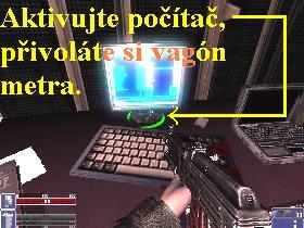 Projděte chodbou před vámi až na konec, v místnosti zlikvidujte pár darebáků, pokračujte do chodby vpravo, sejměte několik dalších výtečníků. Vyčistěte místnost vlevo, z místnosti pokračujte protější chodbou, postřílejte všechny nepřátele a v poslední místnosti vpravo aktivujte počítač, z animace zjistíte, že jste si dole k rampě u kolejiště přivolali vagón metra (obr.9). Vraťte se zpět až do první místnosti, odbočte doleva a prostřílejte si cestu dolů po schodech, na rampě zlikvidujte dva gangstery a nastupte do vagónu, ten se s vámi automaticky rozjede. Při jízdě zlikvidujte z pravého okna vagónu bandity na rampě a jakmile tento sám zastaví, vystupte si doleva, postřílejte parchanty a vejděte do chodby. Vystoupejte po schodech nahoru, vejděte do místnosti, kde zlikvidujte několik banditů a vpravo na zdi aktivujte snímací zařízení, tím v této části skončíte.