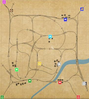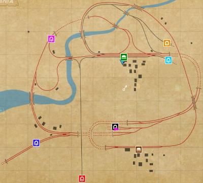 Na tejto mape by nemalo dochádzať k obmedzovaniu smeru jazdy jednotlivých vlakov. Ak by k nemu došlo, odporúčam využívať jednu koľaj na modrej medzizastávke. Inak je celkom dobré, ak sa na mape bude nachádzať veľa vlakov, poslať nejaký vlak na koľaj okolo celej mapy než urobíte z vlakmi poriadok. Ale inak je to opäť ľahká mapa.