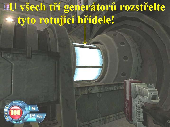 Pokračujte doleva, poté doprava za roh, před vámi postřílejte vojáky a včas