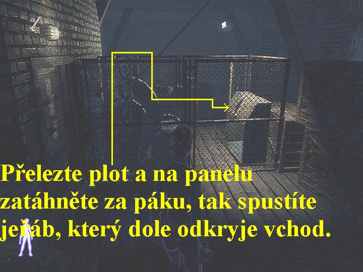 straně rampy si odemkněte branku a za ní přehoďte páku, seběhněte níž a projděte