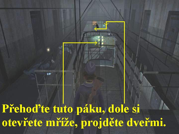 místnosti. Zde přehoďte páku, přeskočte bednu, projděte dveřmi, z chodby pak