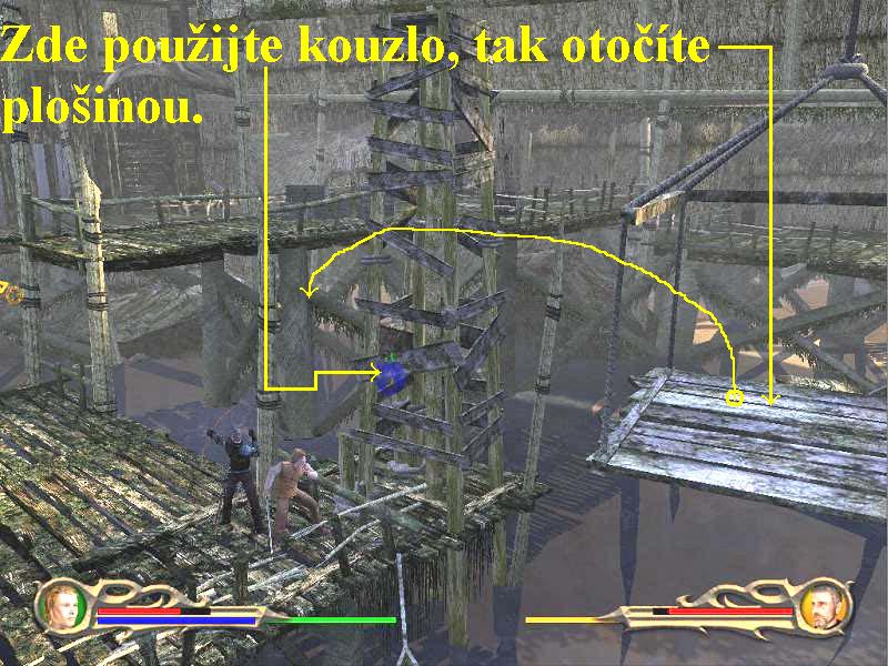 po schoditi doleva nahoru. Zde vlevo pouijte kouzlo, tak zboříte ploinu