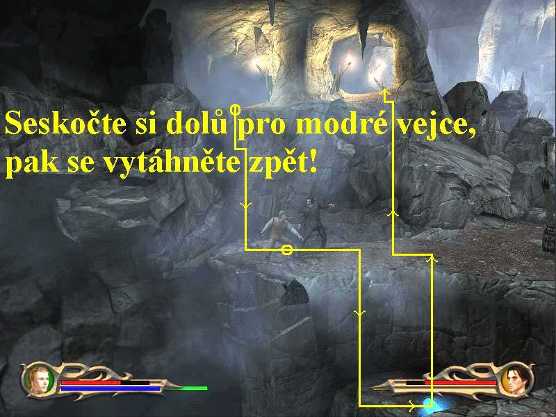 dolů, pokračujte skalním podchodem dopředu, nyní na vás čeká cvičení