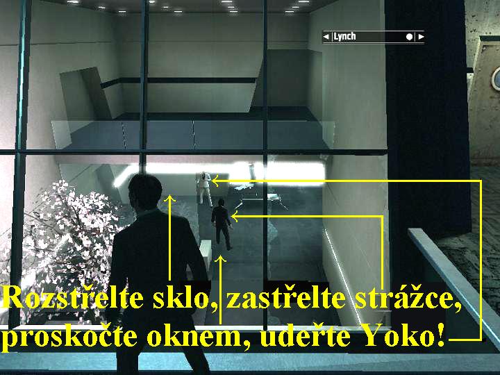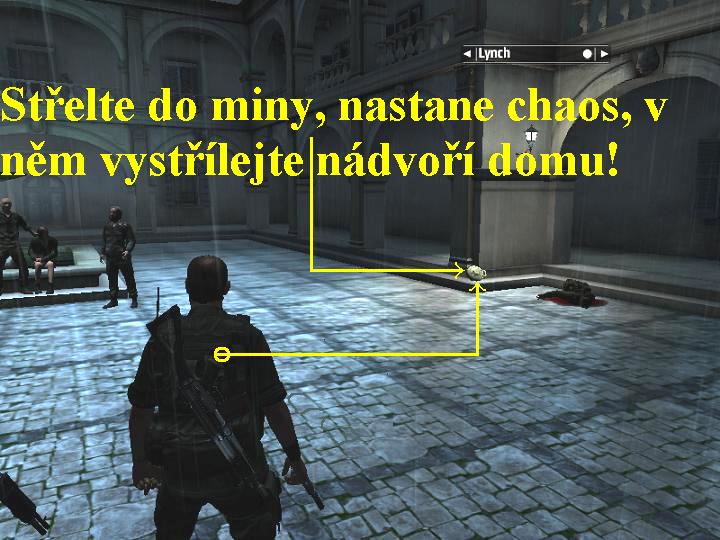 s Lynchem postřílejte několik nepřátel, pozor jsou i na ochozech, pak
