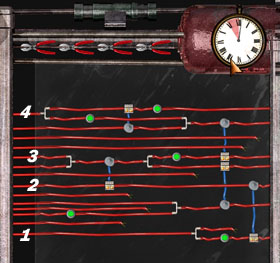 Jděte dopředu k polootevřeným dveřím, které jsou zablokované dřevěným trámem. S pomocí sekery trám odstraňte a běžte dále. Tady vás překvapí Anna a povypráví vám, co všechno se stalo. Tenkrát v Berlíně, to ona zhasla světla a žduchla vás z okna. Potom sama utekla a dostala se až za vámi. Popovídejte si o dalších věcech s Annou a vlevo si všimněte ovládacího panelu dveří. Někdo pravděpodobně na panel střílel, protože po zemi jsou kulky. Ještě více vlevo seberte ze stolu velké ozubené kolo a jděte vpravo nahoru do rozbitých dveří. Octnete se v místnosti s několika nádržemi, kde se podle profesora vytváří tvrdá voda. Vpravo se podívejte na tlakové bomby s plynem a všimněte si, že jsou uchyceny řetězem. Nalevo u nádrže, kousek pod Annou, prozkoumejte malou krabičku a vezměte z ní dvě malá ozubená kola. Dále kousek vpravo na schodech vedoucích k jedné z nádrží seberte další malé ozubené kolo. Pokračujte doleva skrze malé dveře a v chodbě se podívejte na telefonní ústřednu, která je ale bohužel zamknutá v malém výklenku. Na zemi vpravo vezměte o zeď opřené ozubené kolo a jděte dále chodbou. V laboratoři se porozhlédněte a seberte ze stolu vpravo od schodů kabel. Nahoře se podívejte na skříňky, ale bohužel jsou všechny zamčené. Vlevo seberte z poličky červený hořák a ze stolu blíže k vám vezměte další ozubené kolo. Dveřmi vpravo se skrze chodbu vraťte do místnosti s nádržemi. Jelikož v místnosti s dveřmi nefunguje ovládací panel, tak jediná další cesta vede skrze zavřené dveře vpravo. Pomocí hořáku přetavte řetěz, který drží jednu z tlakových bomb s plynem. Tlakový bomba s plynem spadne na zem a zastaví se přesně přede dveřmi. Podívejte se na ventil u bomby a sekerou jej povolte. Bomba s plynem narazí do dveří a uvolní vám tak cestu dál. Jděte tedy do další místnosti a vpravo se na zdi podívejte na pojistky. Z pojistek vezměte jednu rozbitou pojistku a dole pod Annou seberte z bedny již poslední ozubené kolo. Běžte dál doleva a dostanete se k dalším zavřeným dveřím. Nalevo od dveří si na stěně všimněte mechanismu a podívejte se na něj blíže. Tento mechanismus slouží k otevření dveří a je poměrně jednoduchý. Úplně nahoře máte jedno velké, tři střední a čtyři malá ozubená kola, které jste doposud posbírali. Ve spodním okně máte nahoře vlevo hlavní kliku, kterou pak otočíte, až budete mít vše spojeno.  Dohromady mezi třemi kolečky můžete přehazovat řetěz vždy na dvě kolečka, ať už ve volném nebo kříženém oběhu. Všechna ozubená kolečka musíte zasadit tak, aby se dostala až k velkému kolu vpravo dole. Takže dvě středně velká ozubená kola dejte postupně pod kliku. Pod tyto dvě středně velká kola dejte jedno mále ozubené kolečko a pod něj jedno velké ozubené kolo. Napravo od velkého kola dejte jedno středně velké a napojíte se na kolo, které je propojeno řetězem. Řetěz nasměrujte tak, aby byl spojen mezi oběma spodními koly a byl v kříženém oběhu. Nakonec mezi středně velké ozubené kolo vpravo a velké kolo vpravo dole dejte tři malá kolečka, aby byl spoj kompletní. Nyní otočte klikou vlevo nahoře a dveře jsou otevřeny.