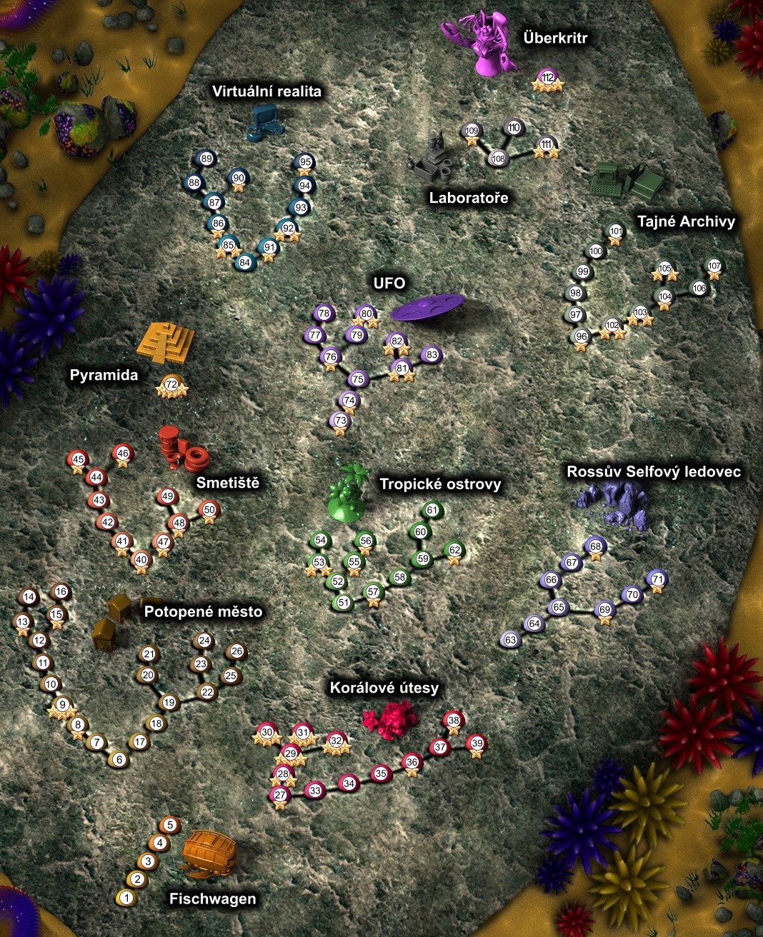 cílem je nejen je projít, ale sebrat i plný počet hvězdiček. Naštěstí