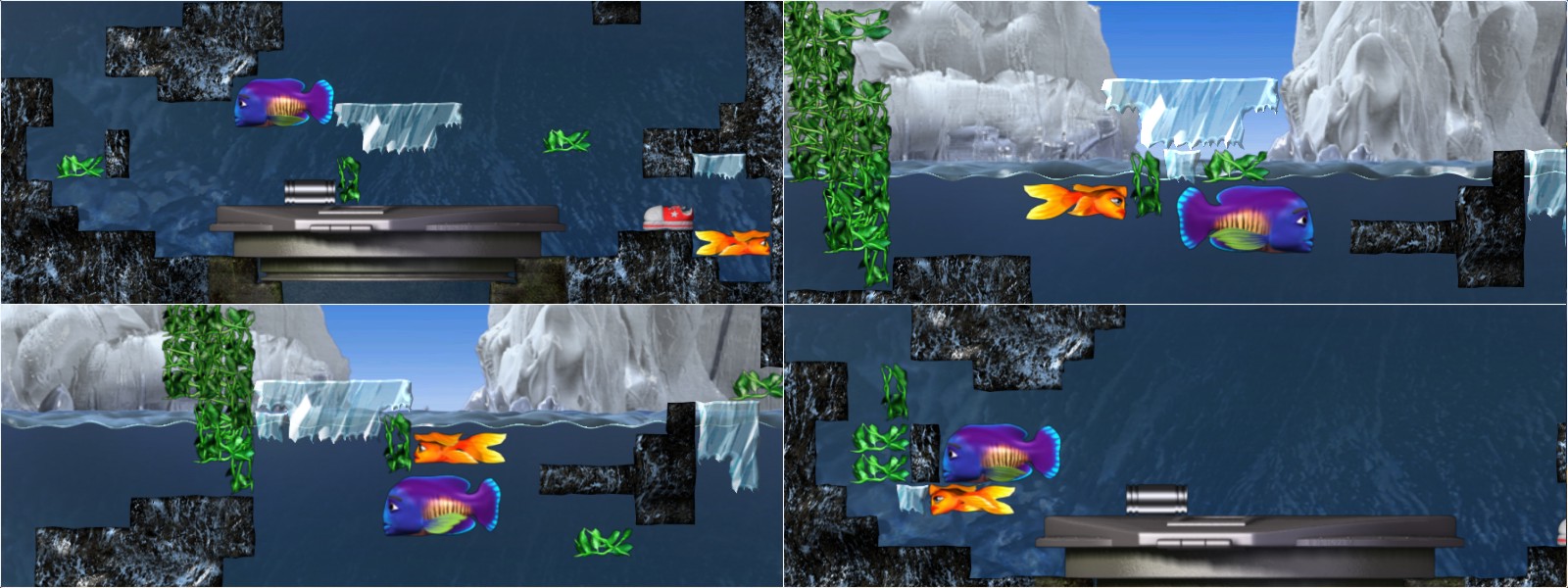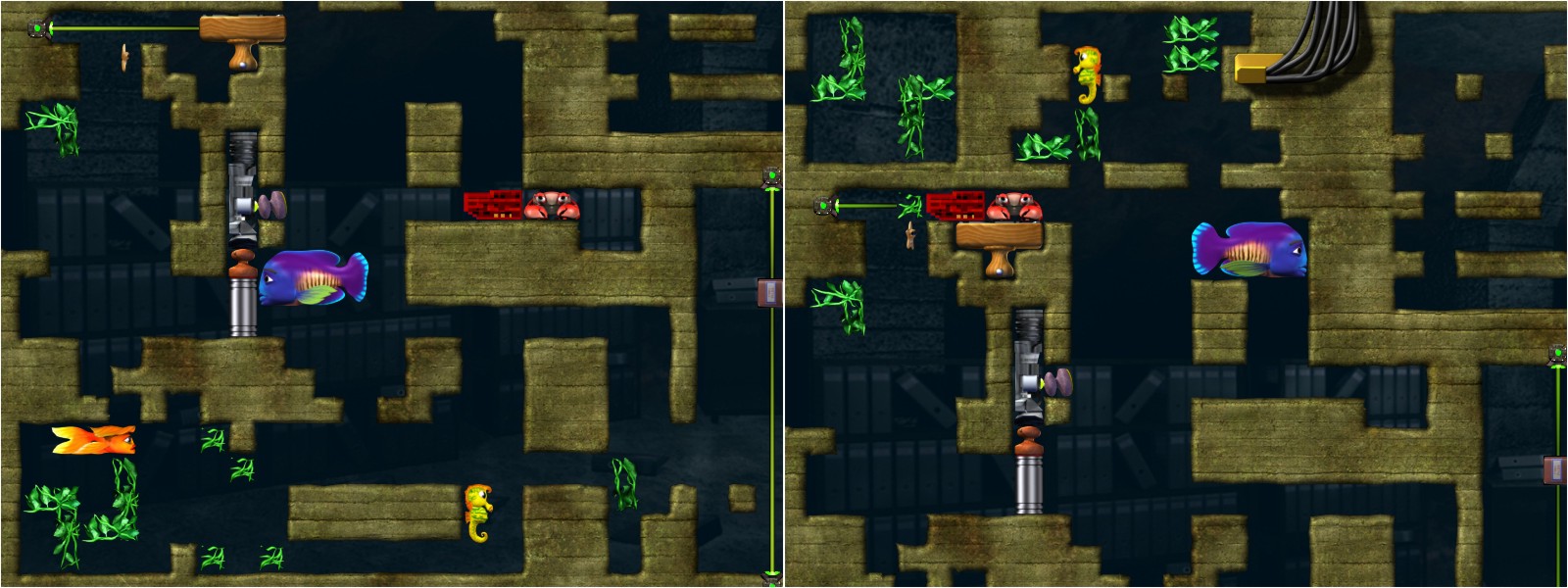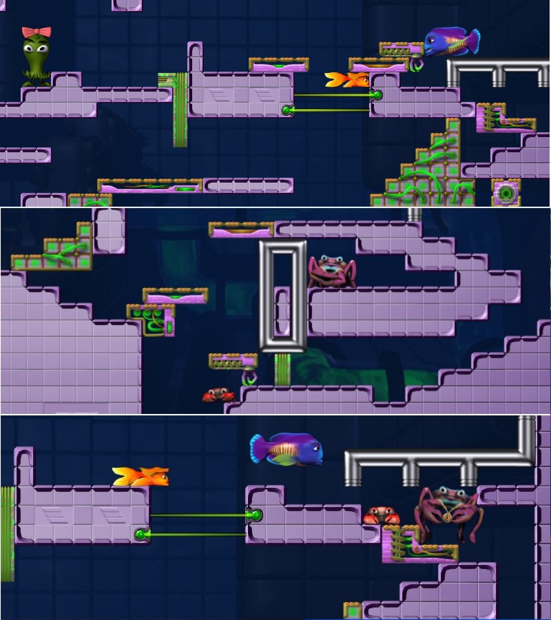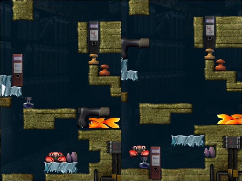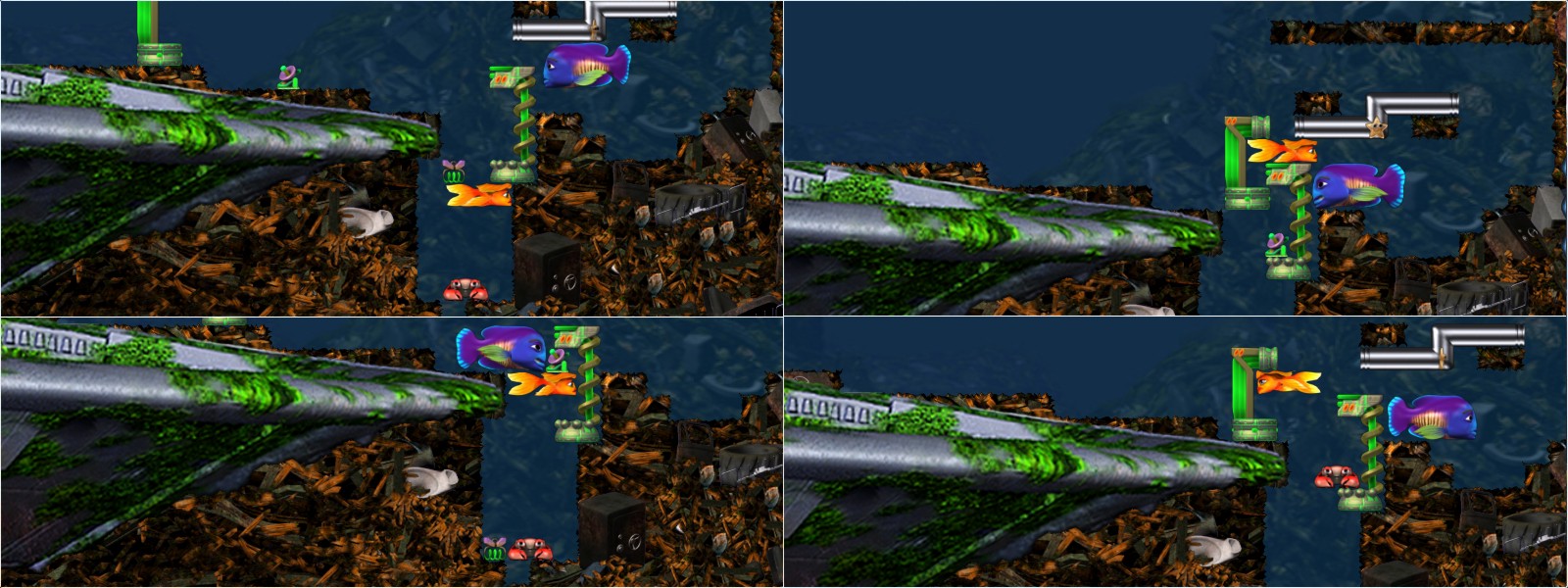 Úvodní místnost vás pouze seznámí s pohybem ryby (agentky Tiny Guppyové)