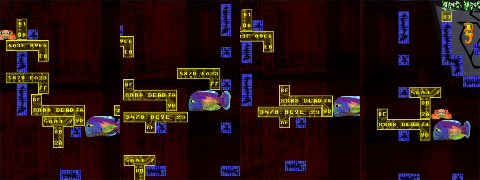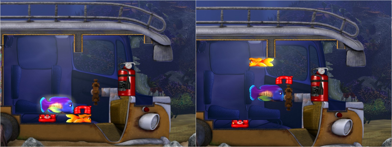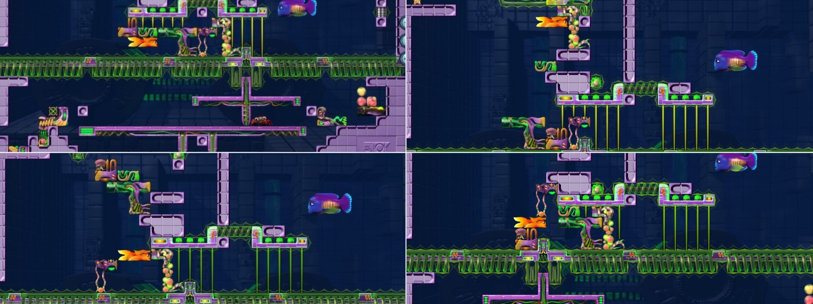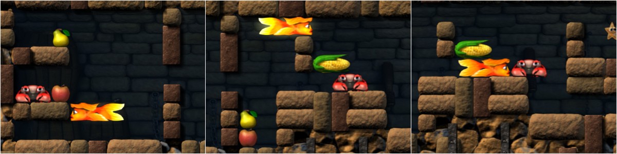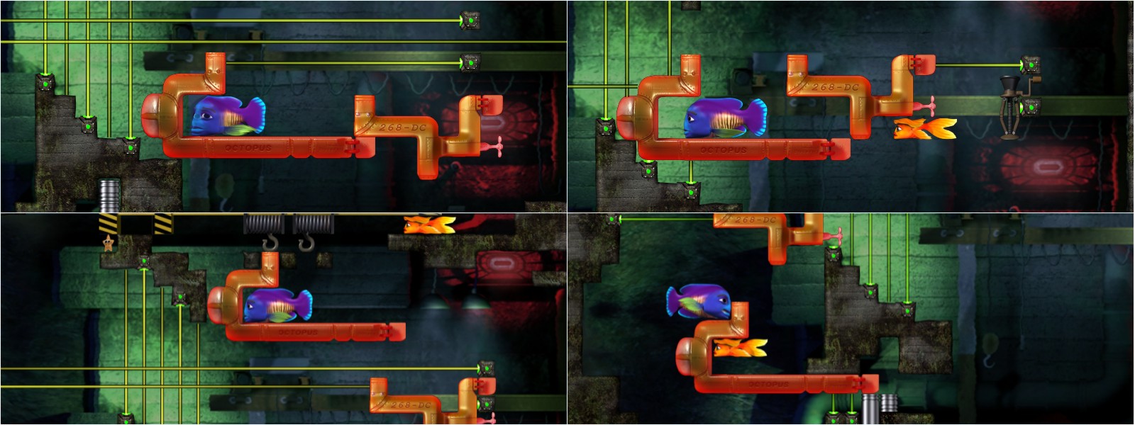 Úvodní místnost vás pouze seznámí s pohybem ryby (agentky Tiny Guppyové)