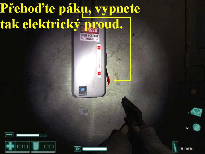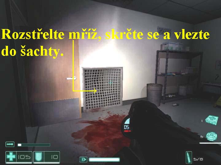 naproti, skleněnými dveřmi vlevo vstupte do místnosti, kde zlikvidujte vojáky