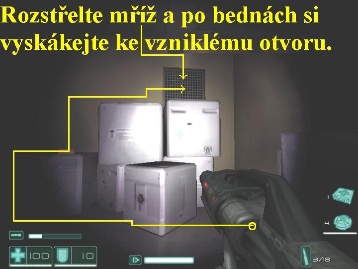 doleva, rozstřelte mříž v podlaze a vzniklým otvorem seskočte dolů