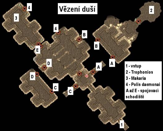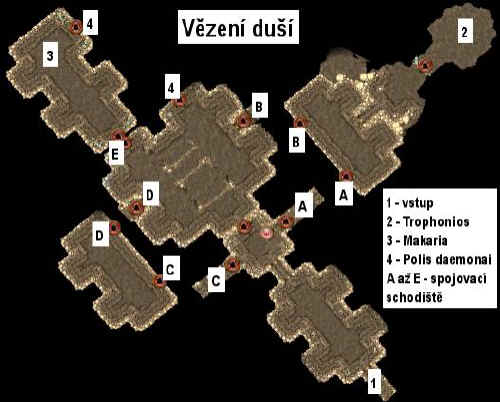 straně je mezi celami průchod, za kterým najdete Trophonia – druhého Hádova