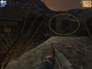 Dojdite ku diere v múre, zlezte dolu a zastreľte 2 vojakov. Choďte k mínovému