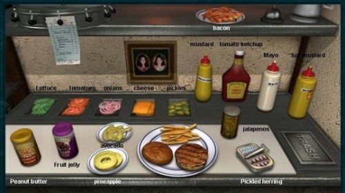 - Colossal Burger - Vetky prísady okrem : pickles, peanut butter, pineapple, pickled herring.