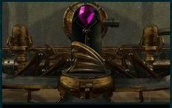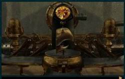 Poobzeraj sa, za ním chýba jedno náradie. Klikni na fialový kameň v pravej nohe
