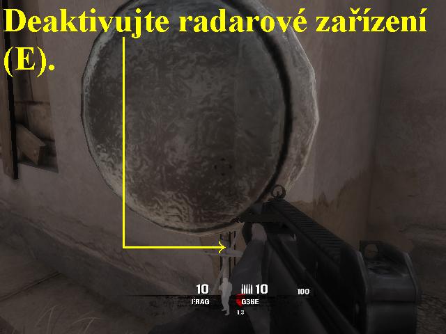 vyměnit zbraně, poté vylezte nahoru po žebříku. Skrčeni pokračujte dál