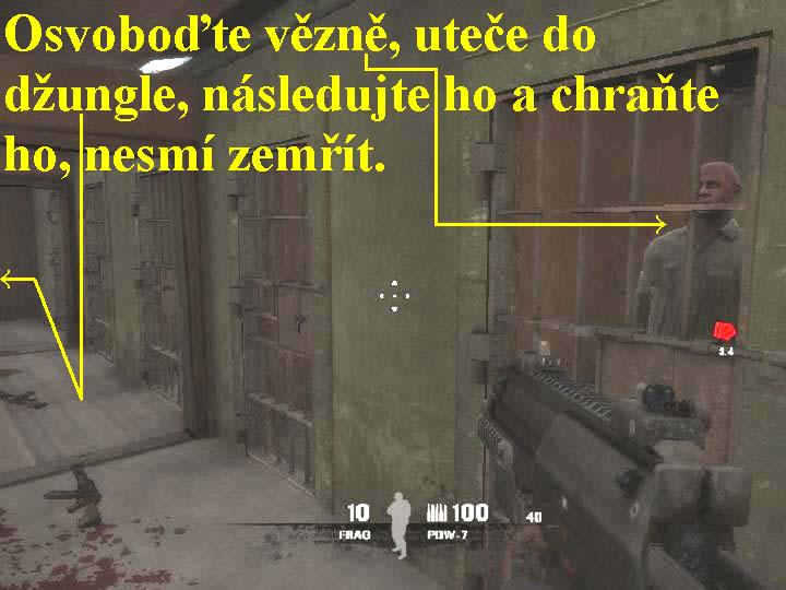pokračujte dál dveřmi. V místnosti postřílejte Rusáky, vejděte do