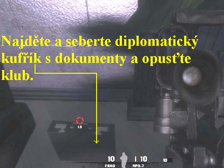 nahoru a prohledejte místnost, musíte najít diplomatický kufřík s „dokumenty“