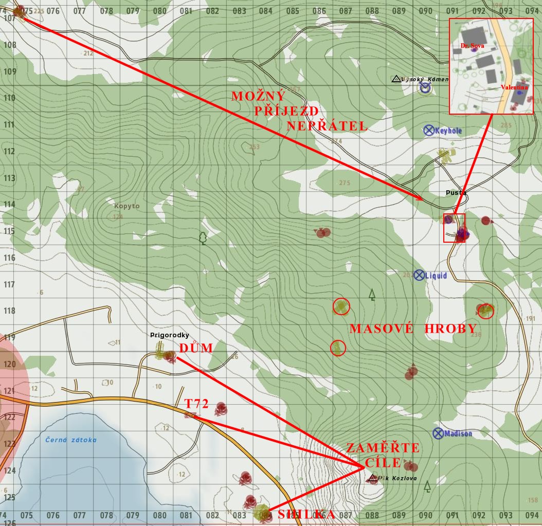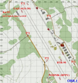 - Tábor ČDKZ je na (116,097) - Hlídaný 2x BRDM 2 ATGM, 2x T72, ZSU-23 Shilka, BMP2, 3x AA