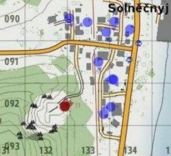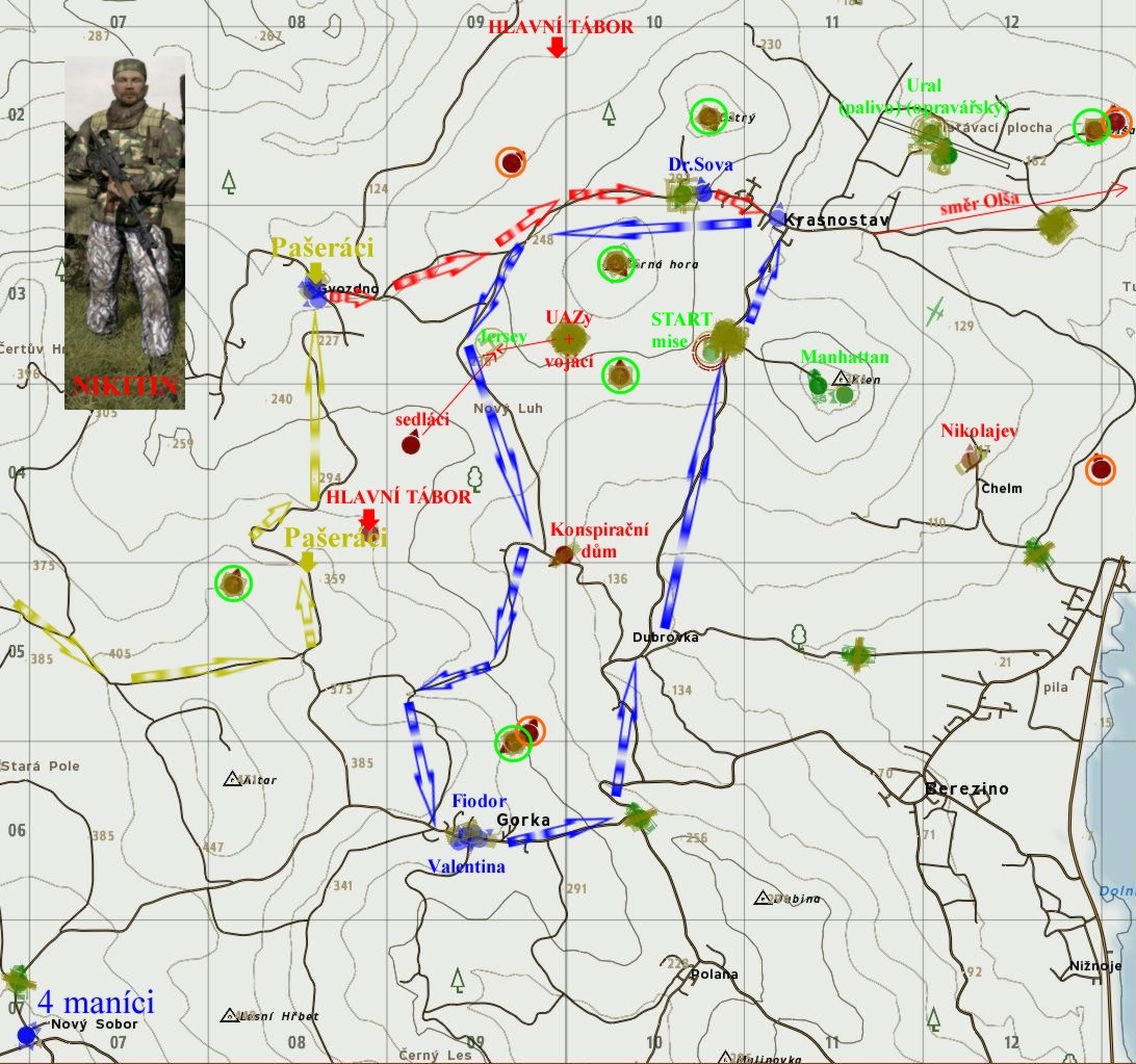 a směr je označen modrou šipkou, řekne vám o Dr. Sovovi, knězi Fjodorovi a že je tu 6 opěrných bodů, ale přesné místo neurčí.