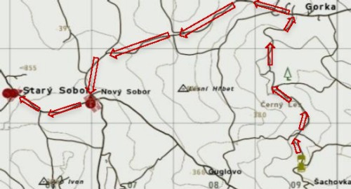 cestou na sever do GORKA. Zde odbočí vlevo a pojede do Nový Sobor, tady odbočí a