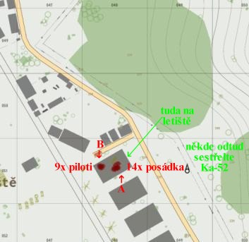 nespatří hlídkující Ka-52. Položte nálož vedle hangáru značka A (OBR 2).