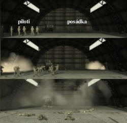 - položte nálože vedle hangáru - značka A a B - odstraníme tak piloty a posádků dřív než nastoupí do svých vozidel