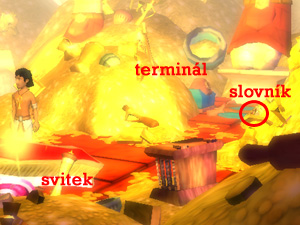 obrazovce a mezerník slouží k přeskakování videí a scének. Pouze zpočátku také