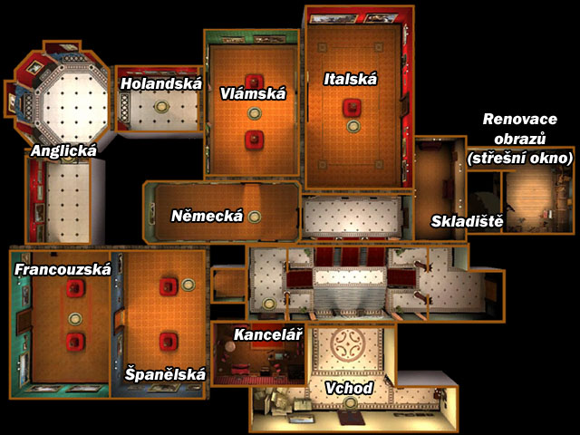 a získáte mapu galerie. Jděte vpřed po schodech, odbočte doleva po schodech