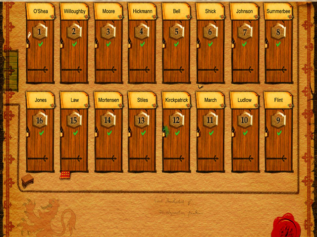 Ze židle u stolu vezměte provaz a napravo od krbu seberte voskovaný ubrousek.