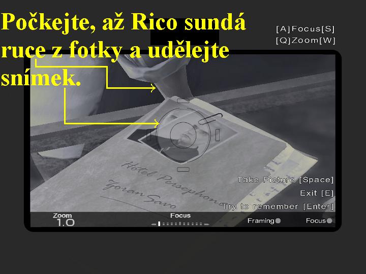 Ocitli jste se znovu v hale hotelu Persephone, nyní budete muset vyfotit okamžik, kdy "gorila" střežící vchod do výtahu vytáhne z pod novinami ukrytou pistoli a tak donutí Lisu, která k němu přijde, aby se vrátila zpět, do výtahu ji nepustí. Fotografování máte ztíženo tím, že mezi nimi a vámi stále pendluje nějaká ženská, takže na strážce výtahu a Lisu vidíte jen krátký okamžik. Jelikož se nemůžete pohnout dopředu, musíte si správně přiblížit kameru a nachystat si správné zaostření, vyčkat, jak ta pendlující otrava na chvilku odejde z dohledu a vyfotografovat strážného ve chvíli, kdy vytáhne z pod novin pistoli. Je to trošku obtížnější, než obvykle, ale při dodržení správného postupu a vystihnutí toho pravého okamžiku, snímek uděláte. Jakmile tudíž snímek pořídíte, prohlédněte si notes, ležící na stolku vedle Lisy, knihu hostů na recepčním pultu a nahrávku vpravo na stolku, splnění úkolů vám bude signalizováno známým způsobem, tedy 1/3, 2/3 a 3/3. Nyní se vraťte k sedící Lise a promluvte si s ní, pohovořte o všem a nakonec ji sdělíte, že si s "gorilou" u výtahu promluvíte raději sami. Jděte tedy ke strážci a pokecejte si i sním, řekněte mu, že Lisa je novinářka, která se všude poptává, co provádí "Savo".Tak gorila odejde k Lise ,vytáhne pistoli a odvede ji, vy nastupujte do výtahu, zamáváte jim a tak flashback skončí.