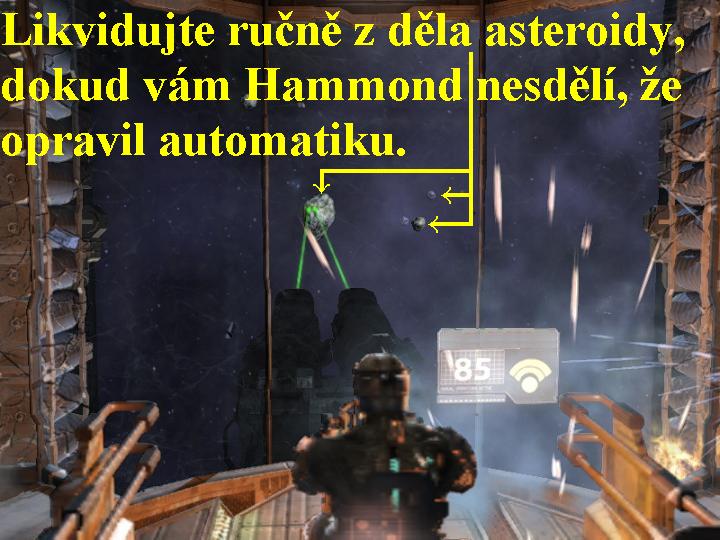 Otočte se a popojděte vpřed, ozve se vám Hammond a poté i Kendra, Hammond bude po vás chtít, abyste za ním došli na můstek. Jděte tedy doleva a projděte dveřmi Hlavní atrium, v chodbě odbočte doprava a jděte vpřed. Zleva vyrazí bestie a udělá díru do stěny, jí však ublížit nemůžete, ani ona vám, zaleze totiž zpět. Jděte doprava až k Obchodu, zde si můžete opět nakoupit různé předměty, doporučuji vám, pokud máte dost financí, si přikoupit novou účinnou zbraň plamenomet. Poté odbočte doleva a projděte dveřmi Hlavní atrium, vstupte do haly, dojděte k výtahu, od Kendry se dozvíte, že byl proražen trup lodi. Nastupte tedy do výtahu, sjeďte dolů a projděte dveřmi do Kapitánovy kajuty. Zde si promluvte s Hammondem, bude po vás chtít, abyste aktivovali výtahy. Vraťte se tedy dveřmi zpět do chodby, vraťte se k výtahu a v něm vyjeďte zpět nahoru. Po vystoupení z výtahu se vraťte zpět do haly, napadne vás opancéřovaná bestie, kterou nezabijete jinak, než střelou do jejích zad. Poté zabočte k otvoru s nápisem Bezpečnostní místnost, odbočte doprava a na panelu před vámi aktivujte Ovládání výtahů. Pokračujte vpřed, před vámi je už vám dobře známá LAVICE, její funkci již znáte, takže vám jen připomenu pospojovat si potřebná uzlová spojení. Vraťte se zpět, odbočte doleva, poté vpravo, projděte dveřmi Výtah na palubu lodních systémů, ve výtahu aktivujte panel a přehrajte si videozáznam, sjeďte dolů, uslyšíte zoufalý ženský výkřik, dole si vystupte, jděte doprava k nápisu K ovládání lodních systémů. Naproti si můžete hru uložit, což doporučuji, pokračujte doleva, před vámi si můžete prohlédnout Lodní sklad a získat tak nějaké ty užitečnosti (těchto a podobných skladů je na všech úrovních více, nebudu vás tedy už na tuto možnost dále upozorňovat a budu se držet jen hlavní postupové linie), poté odbočte doleva, uslyšíte varování od Kendry, pokračujte vpřed a vstupte do dveří lodní systémy. Pokračujte tudy až k výtahu, výtahem vyjeďte nahoru, poté jděte k výtahu Těžební a komunikační palubní systémy. Ve výtahu zadejte jako cíl jízdy Úroveň 03, vystupte si a na konci aktivujte první Palubní systém, poté se vraťte k výtahu a jako cíl jízdy udejte Úroveň 02, vystupte si a jděte k Hlavnímu atriu. Pokračujte na Těžební palubu, vstupte do ovládací místnosti, poté do stejnojmenných dveří vlevo. Zde můžete prohledat sklad jen tehdy, když aktivujete jejich zámek, pokračujte dál dveřmi Hlavní atrium, tak dojdete až do místnosti, kde se zbavte nejdříve všech bestií. Dávejte si pozor na to, ať nešlápnete na místa, ze kterých se zvedá vzdušný vír, jinak se rozplácnete o strop jako amoleta. Počkejte si, až jiskřící kabely uhnou doleva, potom se rychle pravou stranou protáhněte k panelu, který aktivujte, přesměrovali jste první část druhého napájení a kabely vás již přestaly ohrožovat na životě. Poté se vracejte zpět, znovu pozor na nebezpečná místa v podlaze, vstupte do dveří K hlavnímu atriu a druhým výtahem sjeďte dolů, tentokrát do Úrovně 01. Vydejte se chodbou až do místnosti Těžební paluby, zde opět pozor na nebezpečná místa v podlaze, propleťte se tedy mezi těmito kanály až na druhou stranu, kde aktivujte panel s Napájením systému. Nyní jsou již tedy všechny systémy napájeny, ale nefunguje automatická ochrana pro sestřelování asteroidů, tedy automatické palubní dělo. Proto obdržíte od Hammonda úkol dostat se na venkovní palubu až k ručnímu dělu a odstřelovat asteroidy do té doby, než se mu podaří opravit automatický systém ochrany lodi. Opatrně se tedy propleťte zpět mezi nebezpečnými kanály až ke dveřím, kterými jste sem přišli, na konci projděte dveřmi K hlavnímu atriu. Nastupte do výtahu a vyjeďte nahoru na Úroveň 03, nahoře si vystupte a projděte dveřmi Přístup ke komunikačnímu přijímači, aktivujte panel., poté vstupte do Vstup do exteriéru. Projděte dveřmi Výstup z lodi, což je výtah, v kabině aktivujte panel a vyjedete výš. Vystupte si a budete varováni Hammondem, že vstupujete na nebezpečné území, odbočte doleva a projděte kulatými dveřmi, ocitáte se opět ve vzduchoprázdnu a v beztížném stavu na povrchu lodi, navíc doslova bombardované asteroidy. Nyní musíte rychle a s rozmyslem přeskakovat ze stěny na stěnu, vyhledávat bezpečná místa a takto se dostat až k protějším kulatým dveřím, kterými projděte a zasedněte k palubnímu dělu a ručně začněte odstřelovat k lodi mířící asteroidy0000010542_n02.jpg (75304 bytes) (obr.2). Dávejte si ale pozor na to, že dělo se rychle zahřívá a poté na chvíli, než vychladne, je nefunkční, takže střílejte s krátkými přestávkami, ale o to více přesně a na jistotu. Toto ostřelování asteroidů musíte vydržet tak dlouho, dokud vám Hammond neoznámí, že již opravil automatickou ochranu. Opusťte tedy kanón, hru si raději uložte, vyjděte zpět kulatými dveřmi, stejným způsobem se přepravte na druhou stranu ke kulatým dveřím, kterými jste sem přišli, nyní si jen ale dávejte na této cestě, kde vám už asteroidy nehrozí na několik bestií, které zavčas zlikvidujte. Za dveřmi pak odbočte doprava, ozve se vám Kendra, oznámí vám, že jí dochází kyslík a hrozí ji udušení, ale Hammond vám dá příkaz nikde se nezdržovat a vrátit se nazpět k němu. No je to bezpečnostní technik, jistě dobře ví, co dělá, uposlechněte tudíž jeho, pokračujte chodbou vpřed, zabočte doprava, projděte dveřmi do výtahu, v kabině aktivujte panel, tak sjedete dolů. Zde si vystupte, vydejte se vpřed, projděte protějšími dveřmi, pokračujte chodbou doprava, zlikvidujte opět několik mutantů a vstupte dve