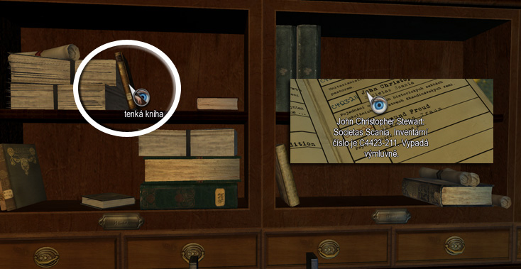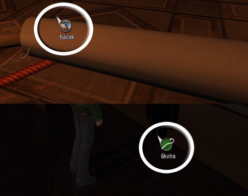 předmětů, kurzor oka je k prozkoumání předmětů; kurzor ozubeného kola slouží