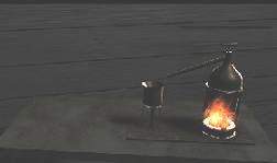 v inventáři - dostanete 3 zápalky. Na drátěný stojan položte ohořelý