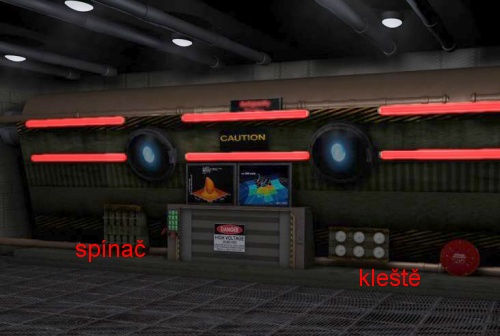 výtahu (mezi blikáním světel musíte trefit tlačítko) - pak jděte na