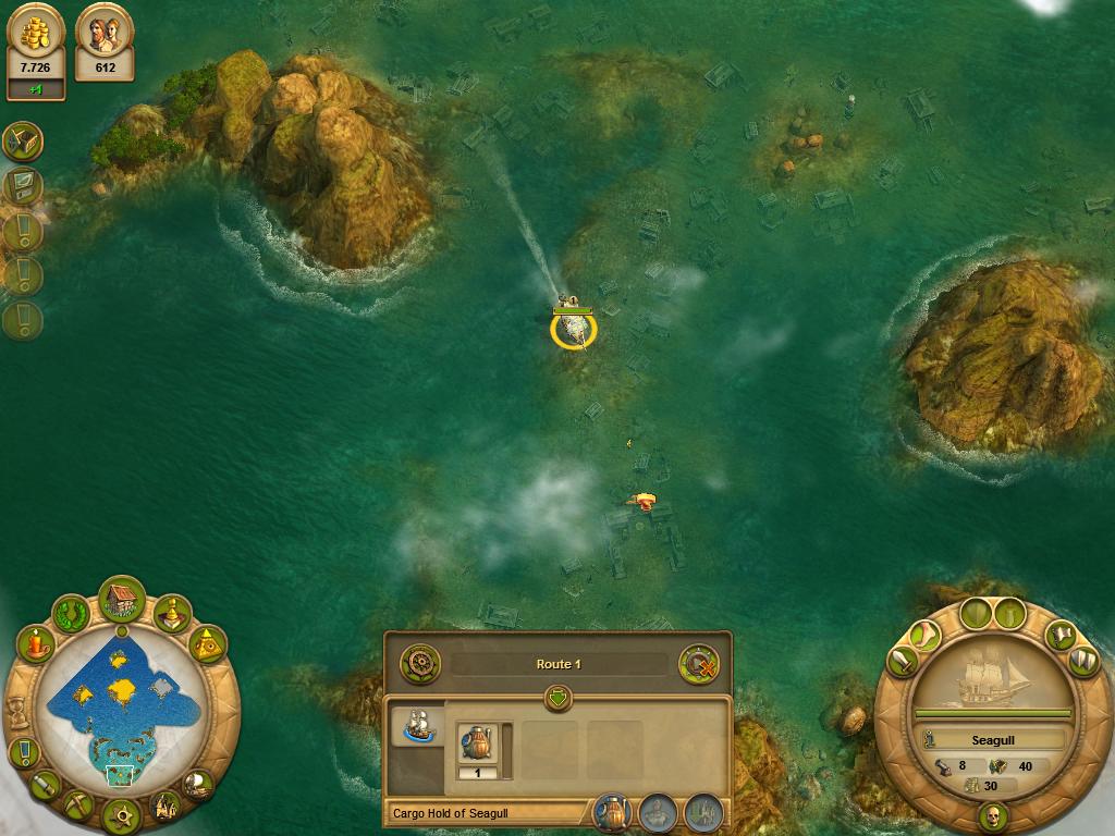skoro potopí loď. Přijede ke své osadě uprostřed mapy (lutá), osadu vám předá pod podmínkou, e jí uvedete do pořádku a osada bude mít