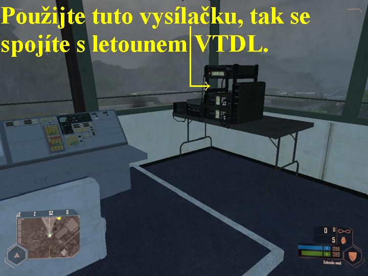 straně věže si vylezte až nahoru, vstupte do řídícího střediska a