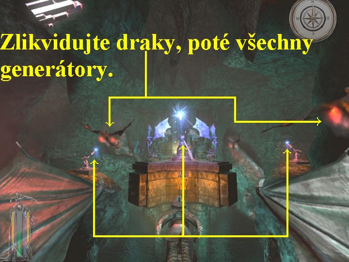 Vaším primárním úkolem je dostat se do Dračí komory, vydejte se tedy dopředu k mříží uzavřené bráně, nyní budete muset najít způsob, jak bránu zpřístupnit. Vrate se tedy, zabočte doprava, poté doleva, zbavte se vetřelců, projděte protější vchodem a vpravo při zdi přehoďte páku, tak jste si zvedli u zmíněné brány mříže. Vrate se zpět, jděte doprava, zabočte vpravo, nalezli jste tajnou lokaci, kde si přečtěte dopis. Nyní se tedy vrate nazpět k bráně, jejíž mříž jste zvedli, projděte jí, pokračujte doleva a zbavte se vetřelců, seběhněte dolů po schodišti, kde pobijte další houfec vetřelců a Zombií, zbavte se i přerostlé bestie. Poté projděte modře nasvíceným vchodem, spustí se animace a po jejím skončení musíte nalézt způsob, jak vypnout buchar. Jděte tedy vpřed, na konci odbočte do protisměru na schůdky, vejděte do místnosti a přehoďte páku, tak jste vypnuli elektřinu. Vyjděte ven, sejděte po schůdcích a zabočte do místnosti vlevo, pobijte nepřátele, projděte místností na druhou stranu do další místnosti, pobijte bestie a na konci vlevo seberte Přízračnou ledovou paži, nyní jste vypnuli buchar. Pobijte nově se objevivší přízraky a přerostlou bestii, vracejte se zpět až do místnosti s bucharem, kde na druhé straně místnosti střelte ledovou paží do modrého kruhu nahoře nad vchodem, tak vyřadíte buchar z činnosti a můžete projít vchodem dál. Nyní se budete muset utkat s kostlivým Thorem a jeho nohsledy. Kryjte se tedy před střelami Thora a pobíjejte jeho poskoky, pakliže se jich na chvíli zbavíte, přeneste vaši palbu na Thora, ukazatel jeho zdraví máte nahoře na obrazovce. To opakujte tak dlouho, dokud se Thora definitivně nezbavíte, pokračujte vpřed, sestřelte několik poletujících střílejících koulí, jděte na druhou stranu, seběhněte dolů po schodišti, poté vpravo po dalším, pobijte Zombie a pavouky, pokračujte vpřed. Pozabíjejte několik dalších bestií, jděte dál protějším vchodem, pobijte houfec bestií a jděte k závalu. Vpravo od něj je bedýnka s klíčem, vstupte do závalu a rychle si přeskákejte až na jeho konec, objevili jste tak tajnou lokaci, kde si přečtěte dopis a navyšte zuřivost. Vrate se přes zával zpět, odbočte doprava a na zámek použijte nalezený klíč, tak zrušíte laserové zábrany a můžete branou projít. Zlikvidujte dvě monstra, zničte poletující střílející koule, vstupte do protějšího červeně nasvíceného vchodu, nyní prohledejte všechny okolní místnosti s nádržemi a pobijte v nich všechny bestie. Zbavte se mechanického robota, projděte takto uvolněným vchodem, postřílejte několik pavouků a bestií, pokračujte vpřed dalším vchodem, opět se zbavte bestií, vyběhněte nahoru po schodišti a přes několik dalších místností se prostřílejte až k uvězněnému drakovi Nagovi, tady kapitolu zakončíte, zároveň se vám také otevřela v menu další mezihra Trojnásobný průšvih.
