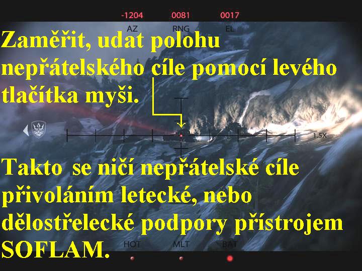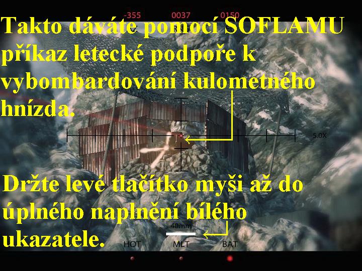 zapnutí SOFLAMU zavolat leteckou podporu pro zničení nepřátelského kulometného hnízda ve skalách