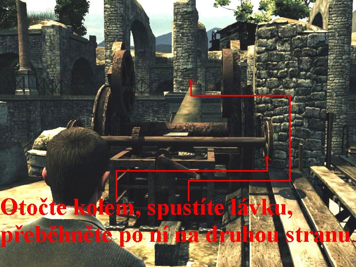 doleva, kde zabijte vojáka (F), poté se na most vytáhněte. Pokračujte doleva,